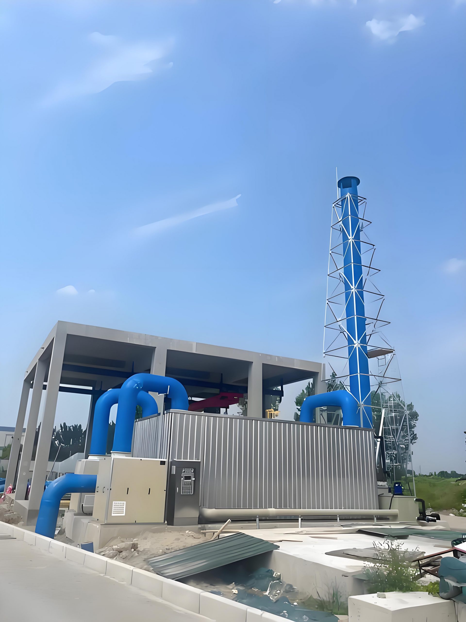 - 预处理单元:喷淋塔或洗涤塔,去除颗粒物并调节气体湿度(微生物需要40%-60%湿度)。